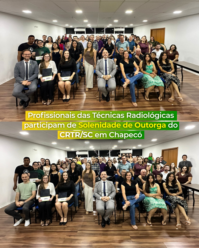 O CRTR/SC realizou na última sexta-feira (06/03), em Chapecó, a 149ª Solenidade de Outorga de Técnicos e Tecnólogos em Radiologia, reunindo profissionais da região Oeste de Santa Catarina e marcou mais um momento especial na trajetória dos novos profissionais das técnicas radiológicas.