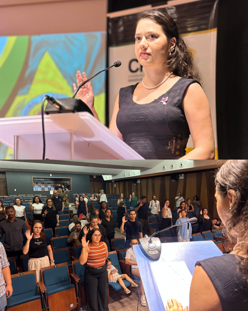 O cerimonial da solenidade foi conduzido por Ana Carolina Paloschi Nogueira. O juramento profissional foi proferido pela técnica em radiologia, Cristina Grossmann, representando os outorgados e reafirmando o compromisso ético e profissional com a Radiologia. Estiveram presentes ainda as assessoras do Conselho, Ariane Rondon (Assessora da Diretoria Executiva) e Tainara Rosa (Assessora de Comunicação).