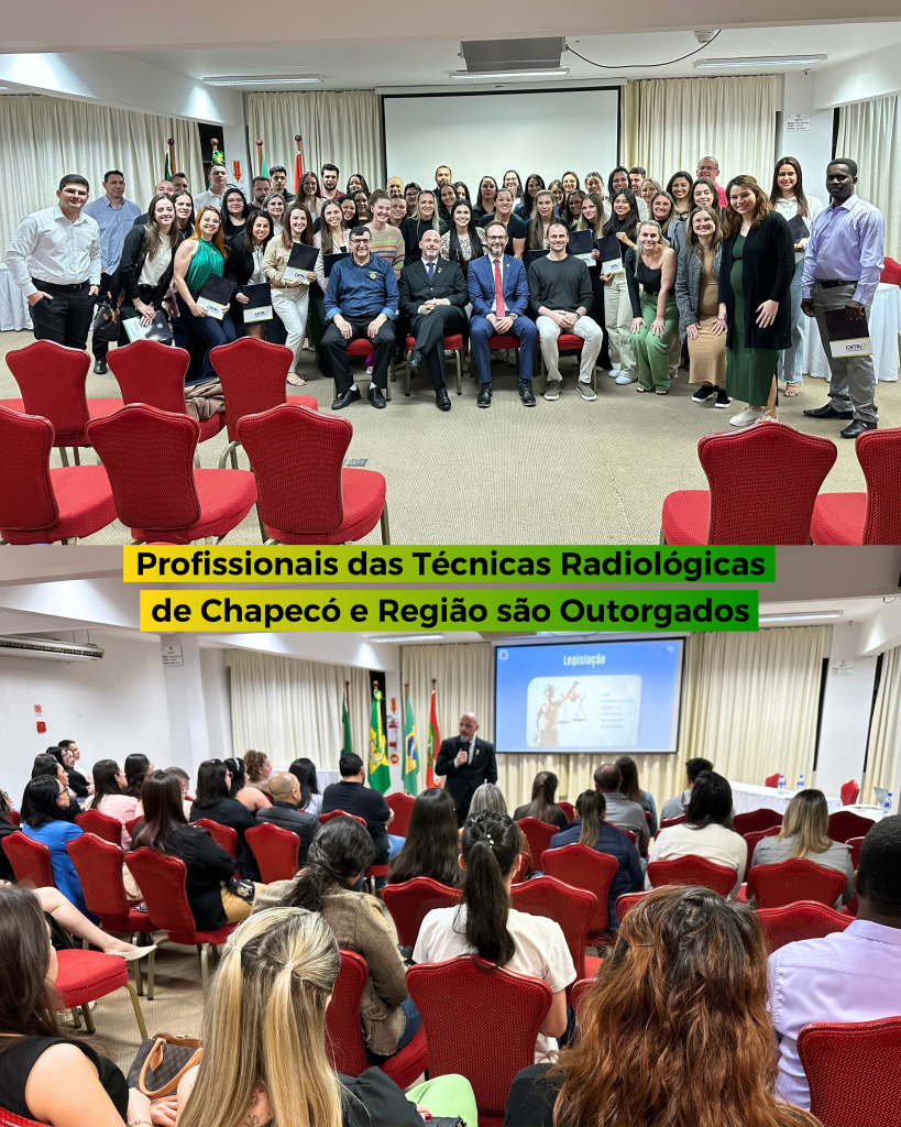 Na noite de quarta-feira, 24 de setembro, o CRTR/SC realizou a 145ª Solenidade de Outorga de Carteiras Profissionais para Técnicos e Tecnólogos em Radiologia. O evento aconteceu no Auditório do Hotel Bertaso, em Chapecó/SC, e marcou um momento especial para os profissionais da Região Oeste de Santa Catarina.