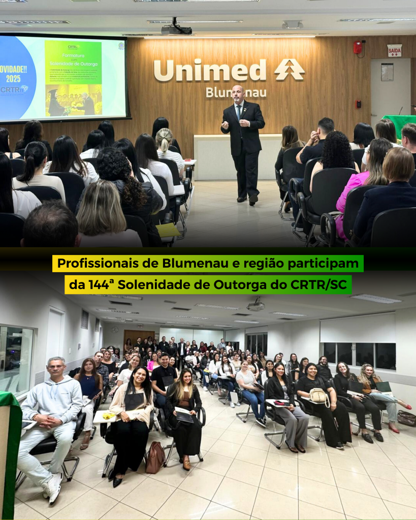 O CRTR/SC realizou nesta quinta-feira, 11 de setembro, a 144ª Solenidade de Outorga de Técnicos e Tecnólogos em Radiologia, no auditório do Hospital Unimed Blumenau, reunindo profissionais da região.