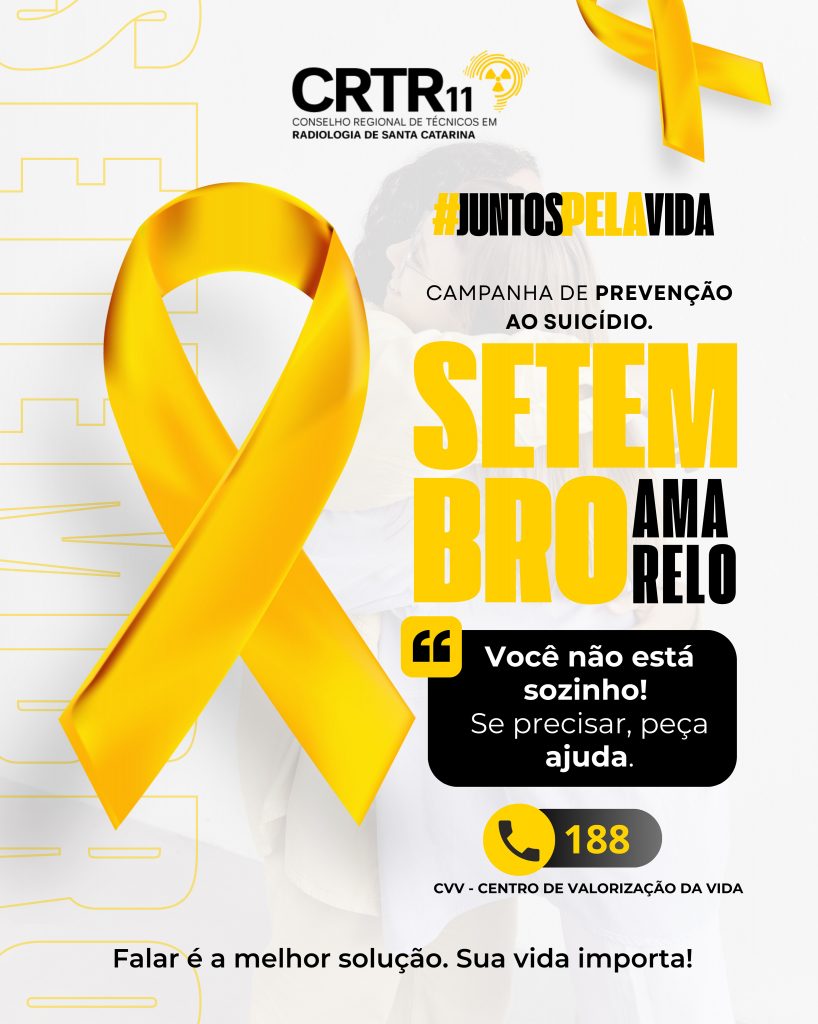 O CRTR/SC reforça que cuidar da saúde também é cuidar da mente e do coração. Profissionais das técnicas radiológicas, estudantes e toda a população: lembrem-se de que pedir ajuda é um ato de coragem, e ouvir com atenção pode ser um gesto que transforma realidades.